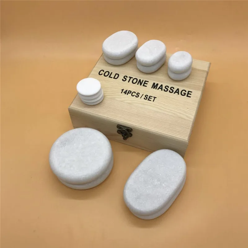 Limited Chance for 14pcs/set Natural White Marble Stone Cooling Massage Therapy Energy Cold Stone SPA Beauty Body Heal
