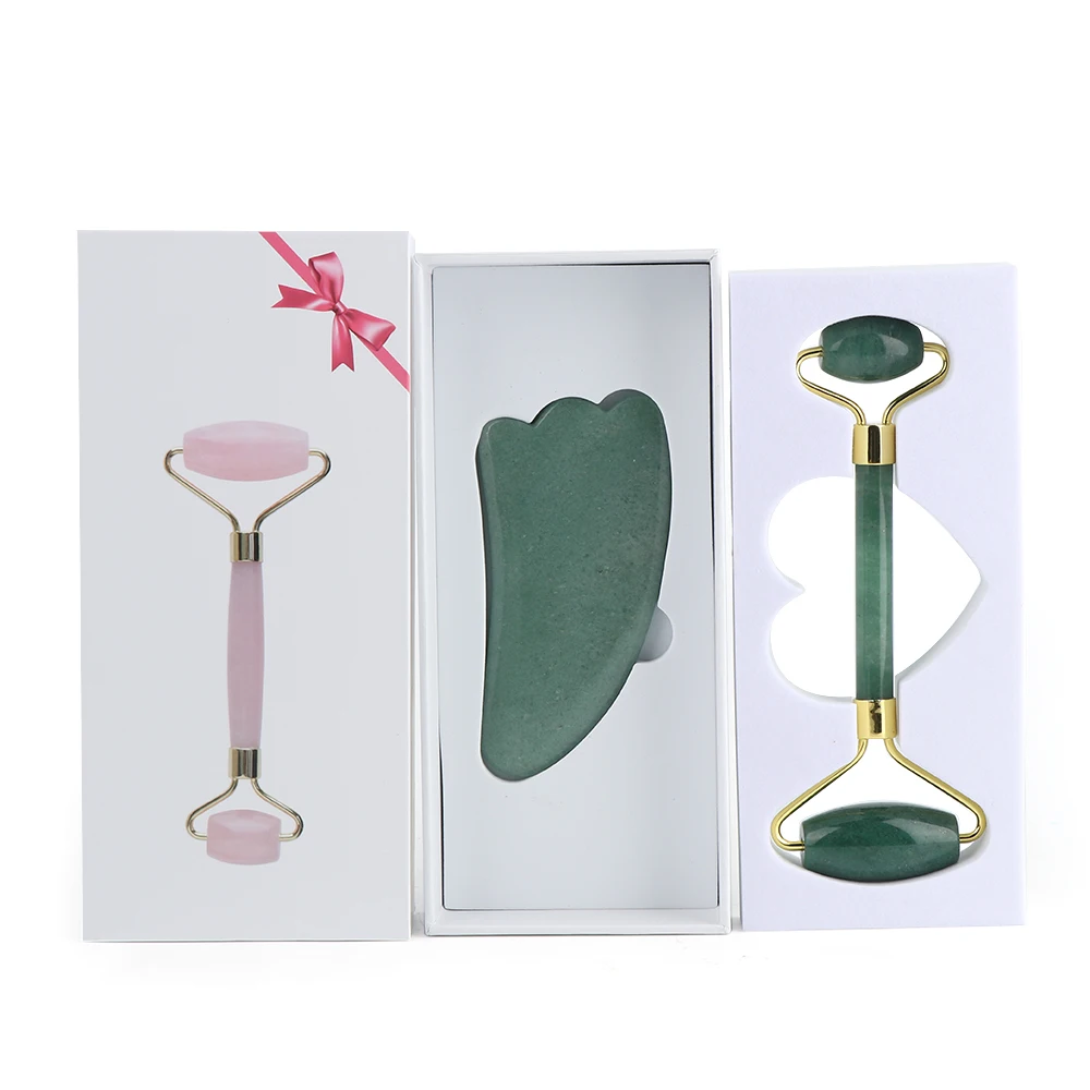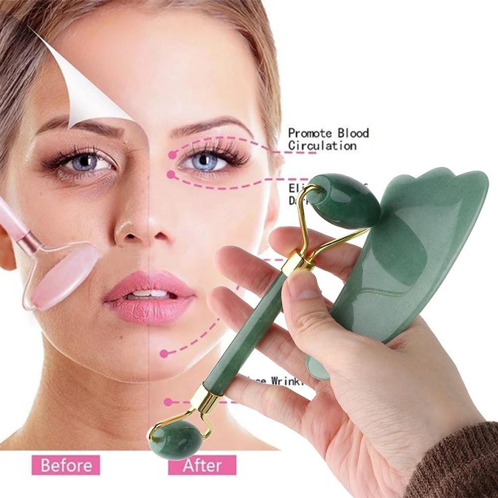Natural Jade Stone Roller Face Massager Portable Facial Relaxation Slimming Lift Anti Wrinkle Double Head Massager Makeup Tools