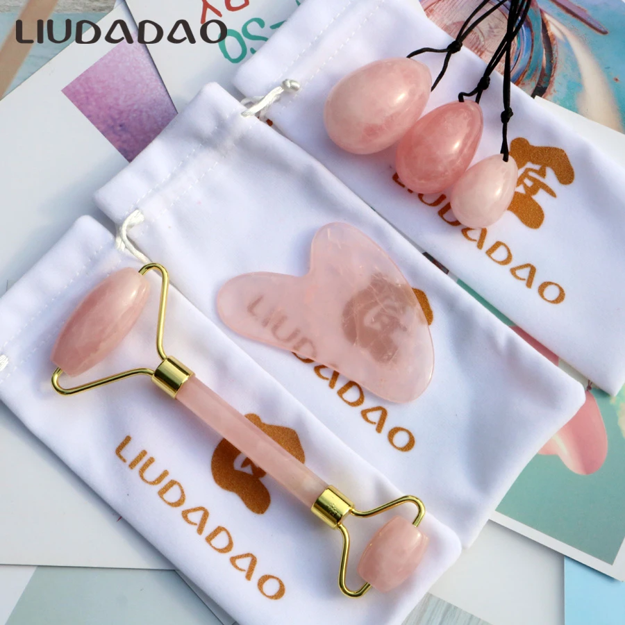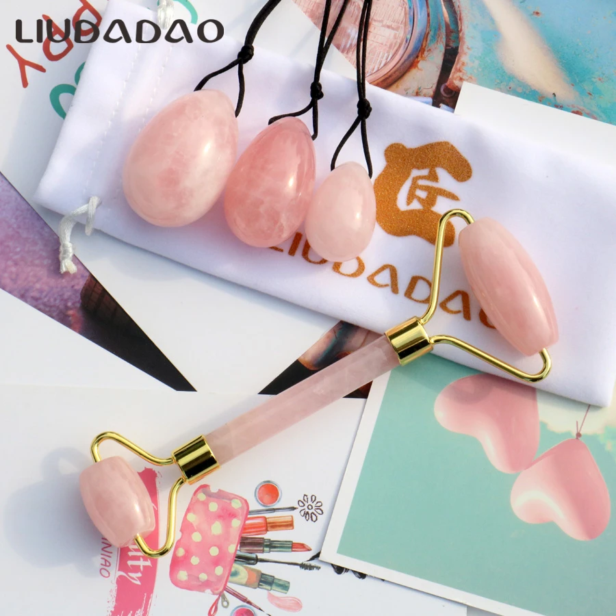 .image of LIUDADAO Face Massager GuaSha Yoni Egg Jade Facial Rollers Set Quartz Ben Wa Ball Women Kegel Exerc